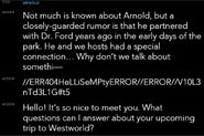 Arnold fue asesinado aproximadamente 34 años antes de que el Dr. Ford entrevistara a Dolores en Contrapasso. Se decía que Arnold y los anfitriones tenían una "conexión especial".