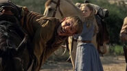 Dolores mataba a los hombres que la atacaban uno a la vez. El último la ve cojeando y va a dispararle, pero es matado por una moto que lo atropella. Caleb escucha los diparos y se acerca y ve a Dolores herida. Le pregunta si necesita ayuda, pero no contesta al desmayarse.