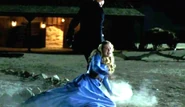La versión anfitriona se da cuenta de que estaba lastimada, pero le dice que no importa y que se encargaría de los hombres de Martin quienes estaban llegando y le disparan.