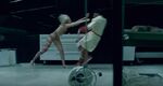 The technician finishes painting the tattoo and moves on to his next task: cleaning Armistice's teeth. Unable to get a decent grip, he takes off his glove before sticking his fingers in her mouth. Armistice suddenly snaps awake, flashes a smile, and starts biting down while grabbing onto his arm. She throws him around before pinning him to the ground, extracting his severed fingertip from her jaw, and forcing him to swallow it.