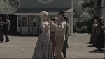 In a flashback, Armistice (without her tattoo) is seen as one of the Sheriff's deputies in Sweetwater during James Delos' first visit to Westworld.