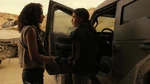 Night closing in she brings the truck into an area marked as an Action Demolition Site with live explosives, as part of a Park Expansion Project. Pulling the truck in by a small control cabin. Grabbing the machine gun, Maeve and Caleb open the truck doors, and force Hale out. Maeve assuring Caleb they're almost there. Only for a bullet to ping off the truck door. William having followed them. As they shelter behind the truck, Maeve says she'll handle him, telling him to take Hale and call his team, handing him the other machine gun. Warning her she can't trust him with that, she tells him she just did. "We keep getting interrupted!" William calls to Maeve. As the two of them start firing at each other, Caleb forces Hale into the control shed and shoves her into a chair, tying her to it. Initiating the communication panel he calls desperately to see if his people are out there. A relieved voice finally answering, saying they were about to give up on him. Sending them his coordinates, he tries to patch himself up asking about his family, and is told they're fine, they lost Carver, but Frankie & Uwade are safe.