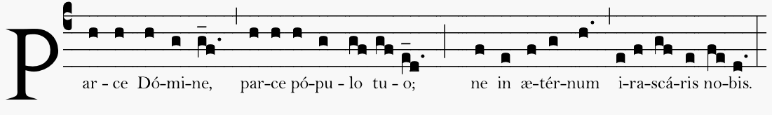 - In Latin: Parce, Domine, parce populo tuo: ne in aeternum irascaris nobis.