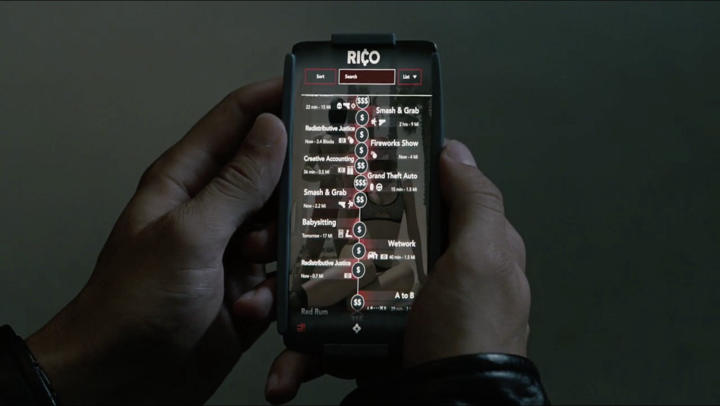 RICO is an app used by individuals to accept short term and illegal work - such as robbing ATMs, kidnapping, and more. Users of the app are alerted to work that they may be qualified for.