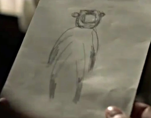 Later, as some Native Americans are marched through town, a child drops its toy… and the toy is of a man wearing one of the hazmat suits. A soldier tells her the figure is part of the "indigenous people’s religion". Later, when Hector Escaton enters the saloon, Maeve puts a gun to his head and promises him whatever is in the safe, if he can tell her more about her sketches. He confirms that it’s a “shade,” a character from sacred native lore that they make figures of. When Maeve asks what the "shade" does, Hector states “a man who walks between worlds. They were sent from hell to oversee our world.”[2]