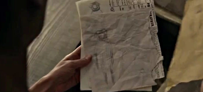 Another of her vision/memory's shows park technicians in the hazmat suits that they wear. Maeve hastily sketches it afterward. When she goes to hide the drawing under a floorboard in her room, she finds a cache of similar drawings: This has happened before, and she hasn’t remembered.