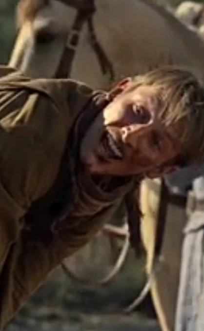 When the train carrying William, Dolores Abernathy and El Lazo is attacked by the Confederados, Slim's dressed-up and nitroglycerin-filled corpse is sent out on a horse as a distraction. As it gets close to the Confederados El Lazo shoots Slim's corpse, causing an explosion that allows the train's passengers to ride away.[1]