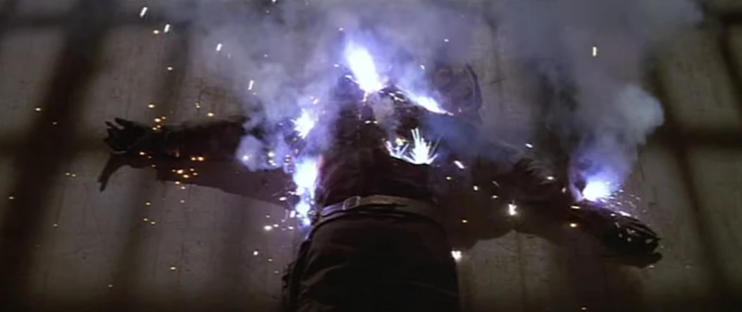 While hiding from the pursuer, Martin stands under a torch to become undetectable since fire's temperature surpasses the one of his body. However, when The Gunslinger still figures him out, Martin shoves the torch in him, which, in combination with the acid, sets The Gunslinger on fire. He tries to resist, but the fire burns his insides.
