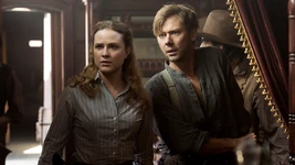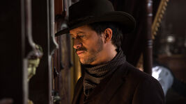 On the train they took out of Pariah, William plays poker with Lawrence while Dolores, arms folded, looks disapprovingly away to gaze out the window. Losing a hand, William encourages her to play with them, but Lawrence tells him he's wasting his breath, she's obviously harbouring a grudge. And he doesn't blamer her, he did some nasty things to them both, but, this so called war is the Confederados and the Government against starving farmers armed with rocks is in reality a slaughter. And if he had to do it all again to them, he would. Dolores notes sardonically that they know where he stands at least. But he suggests she not act so innocent, after all it was them who came to him looking to join up with the warmongering Confederados. William tells him that wasn't their idea. Not able to tell them that Logan wanted to see how the 'game' played out, he says Logan wanted to see what was at the end of the conflict. But, Lawrence points out, it's him that is here, not Logan, suggesting that maybe William has more of an appetite for war than he thinks.