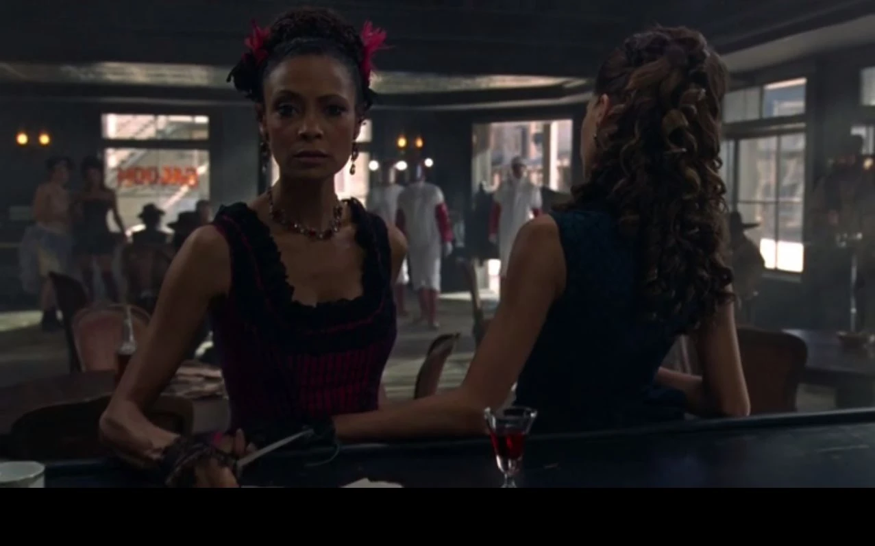Waking up, Maeve gets up, dresses and walks to the Mariposa Saloon, as the piano strikes up the usual loop music, albeit sounding slightly more discordant than usual. Maeve now acutely aware of her mundane routine. On entering the Mariposa she goes towards the bar, only to stop on hearing the same old tune. Improvising, she walks over to it, and slams the lid on the player piano before settling at the bar. Seeing Clementine yawn, Maeve starts again to tell her never to open her mouth that wide unless someone's paying her for it - only to remember having said that before and catch herself. Clementine mentions again about her nightmares, and rather than giving her advice on how to wake herself up, she asks her what her nightmares are about. As Clementine frowns a little, Maeve asks her if she ever dreams about being someone else? "I don't think so," Clem answers, wondering why she's asking. Maeve asks her if she's ever thought whether this is the future for her.