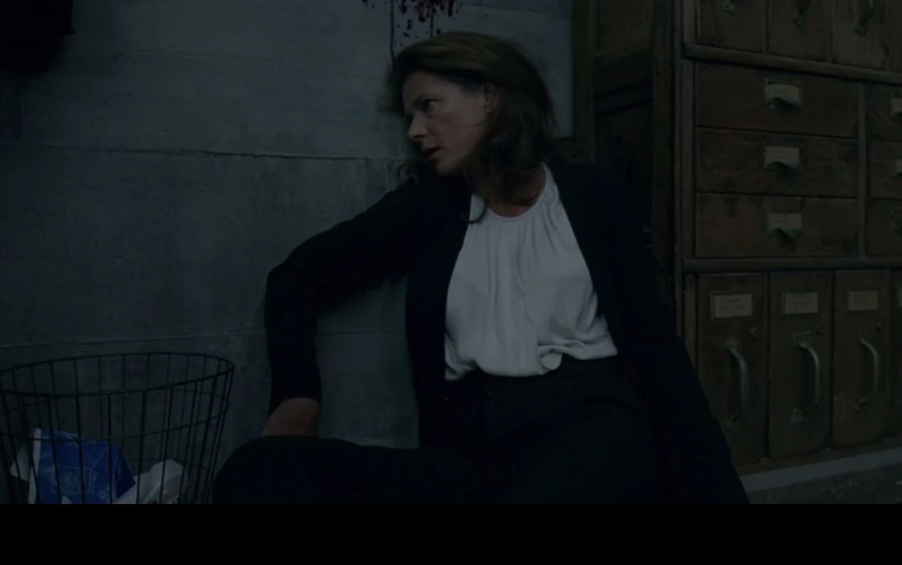Stubbs enters the room drawing his gun as Clementine stares at her reflection in the glass, touching her painfully bloodied lip, staring at the blood on her fingers. Using standard voice commands he attempts to get her to freeze, but she doesn’t respond, trying to tidy herself up before she turns to look at, and then advance on him. Stubbs shooting her in the chest. Theresa says that in each malfunctioning hosts case they weren't resetting properly, the retention of data that hadn't been wiped overloaded their decision making apparatus eventually causing a system failure that allowed them to override their primary rule set. Their concern with the Reveries being that the hosts can retain some of their experiences and act on them. Bernard asking if they're saying the hosts are effectively acting on grudges? Exactly what she's saying Theresa answers, saying its funny he used that term, as, of most concern to her, was that some of his own techs voiced those exact same concerns, meaning Elsie, to him. She accuses him of putting the code out without proper vetting and without understanding of its ramifications. So either he didn't write it, or he's getting so sloppy he's putting the guests lives at risk.