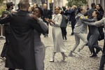 In NY, the lamp post Tower transmission devices give off a controlling rattle, while on a busy pedestrianized street, a bloodied handed piano player begins to play Handel's Sarabande on the instruction of Hale. Approving of his playing she suggests they are missing something. Dancing, she decides and instructs every near passerby that they should be dancing. The pedestrians immediately pairing off to begin the stately baroque sarabande dance. Walking to a street vendor who is feverishly carving an ice sculpture of her, she tells him it's not bad, then shoves it to the ground saying she's seen better, telling him to start again. Deciding the music is too slow, she tells the pianist to give her something with more 'pep', the rattle ringing out again, as he plays an upbeat version of 'Perfect Day' the dancers moving into a lively waltz with each other. Charlotte beating the time and joining in until William distracts her, noting it's not often they have the pleasure of her company in the city.