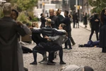 Making their way through the streets of the NY Park with the Outliers, Stubbs keeps a watch around uneasily, But it doesn't stop William from catching sight of them as he closes in on the breached Outlier himself Setting in motion the chimes, Stubbs hearing them, tells Jay there's something wrong, but Jay doubts him. Until all the controlled humans around them, freeze...and then turn to look at them. Before advancing on them en masse. Odina knowing they can't help themselves, say they need to fall back. But Jay is determined to get to the Outlier, and insists they split up. As they start to fight off the controlled humans, Jay fights his way through them, yelling at them to hold them off, he's getting to the roof.